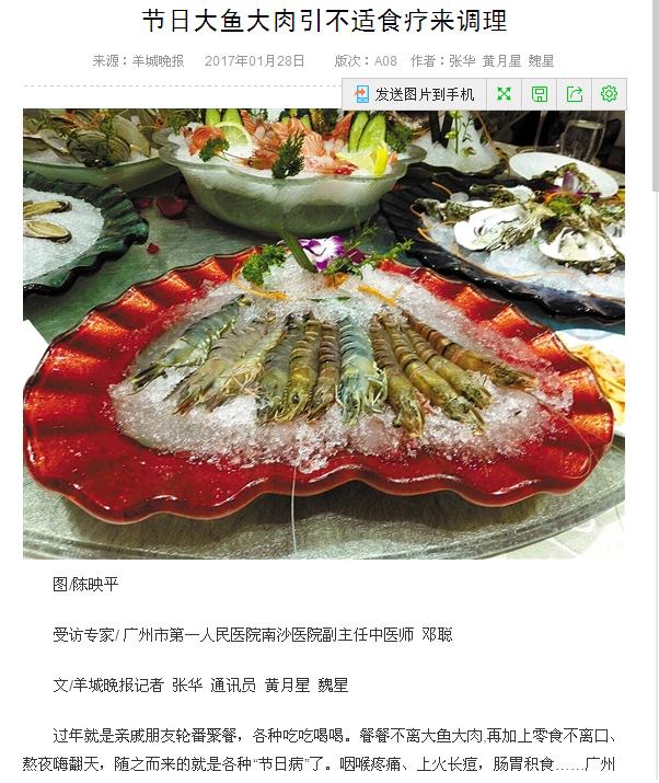 《羊城晚报》:节日大鱼大肉引不适食疗来调理 2017年1月28日A8版
