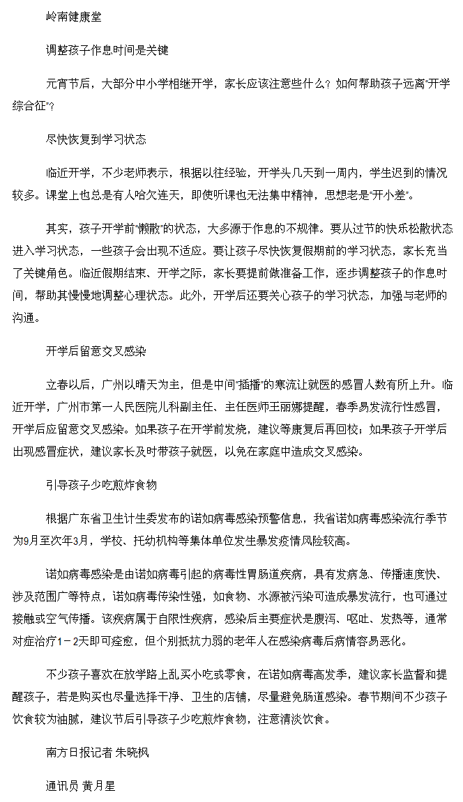 《南方日报》:调整孩子作息时间是关键 2017年2月12日A5版