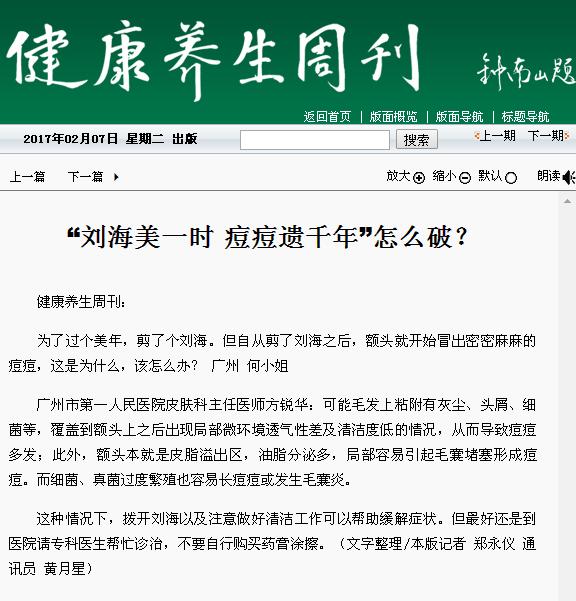 《健康养生周刊》:“刘海美一时 痘痘遗千年”怎么破? 2017年2月7日