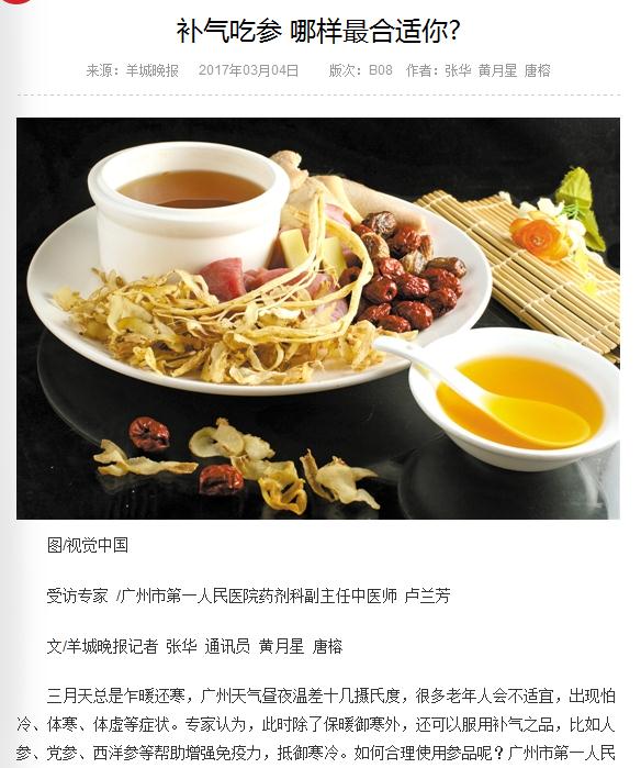 《羊城晚报》:补气吃参,哪样最合适你 2017年3月4日B08版