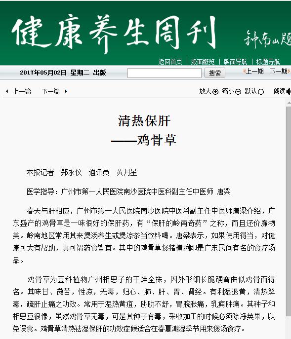 《健康养生周刊》:清热保肝——鸡骨草 2017年5月2日A06版