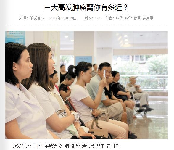 《羊城晚报》:三大高发肿瘤离你有多近? 2017年9月19日B01版
