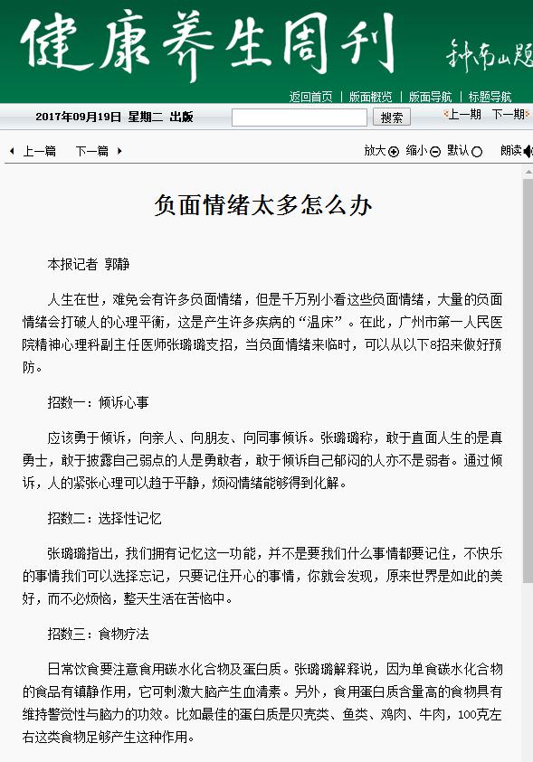 《健康养生周刊》:负面情绪太多怎么办 2017年9月19日A07版