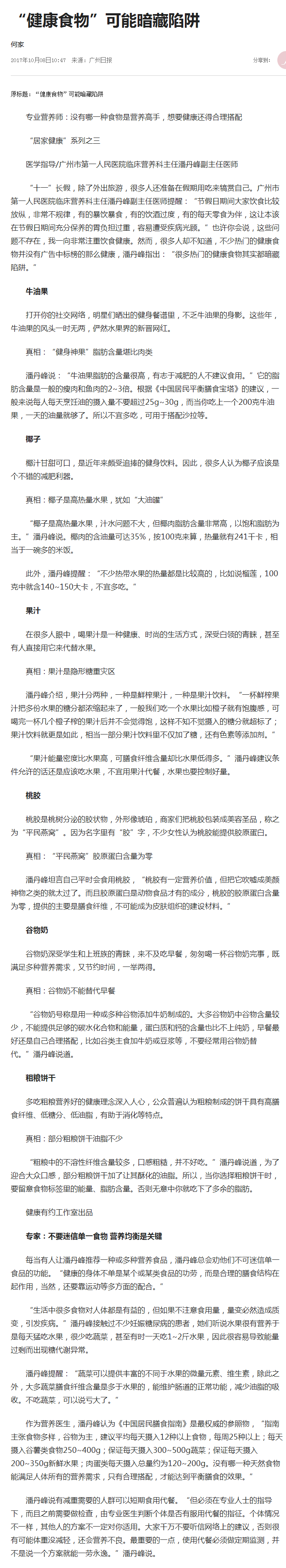 《广州日报》:“健康食物”可能暗藏陷阱 2017年10月2日A12版